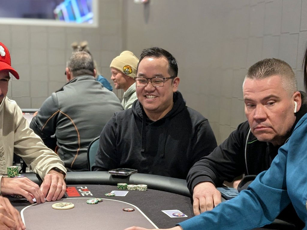 They are down to four now after Colten Yamagishi hit the rail for 5th place. I missed the action as I was out of the room for a minute, but Yamagishi was joking during the game that he “always gets 6th place in these” so he was hoping to go a little deeper today. He got his wish with the 5th place finish.