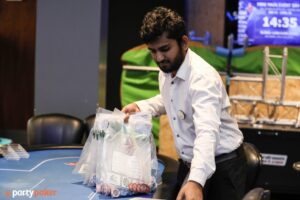 Returning after yesterday’s intense Day 2 flight were 36 hungry poker players, all with a sole mission in mind: emerging victorious, claiming the £17,170 first-place payout and the coveted PartyPoker trophy.