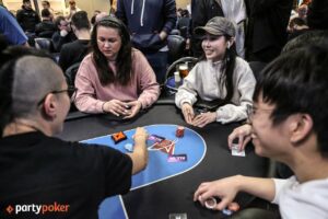 Kassouf was still in, and he wasn’t the only familiar face in the field. PartyPoker Team Pro Matt Staples was still in the mix, and he got up to 3,000,000 in chips when he managed to knock out the last woman standing in the tournament, Cassandra Yong.