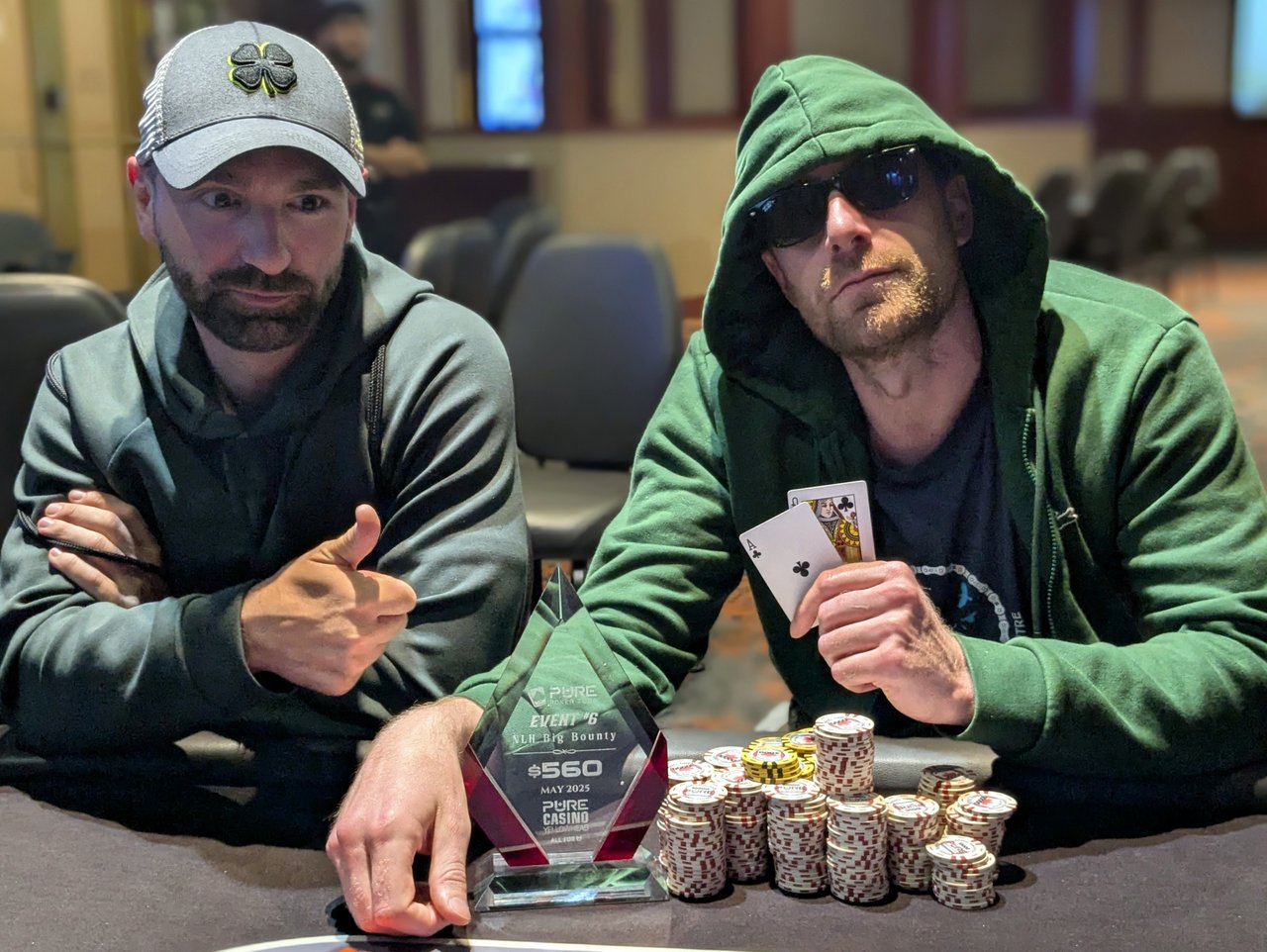 E6 Winner Michael St Pierre-Porter (R) with his rail MIke Malm Michael St Pierre-Porter is no stranger to deep runs in poker tournaments — This marks his second win and he has 3 2nd places and a couple of 3rds in his short poker career. His first recorded cash was less than a year ago at the Aug 2024 WSOP-C in Calgary and he had 19 cashes in that time prior to tonight.