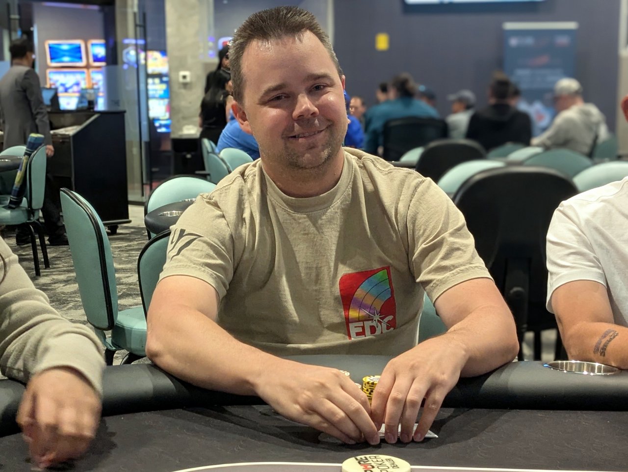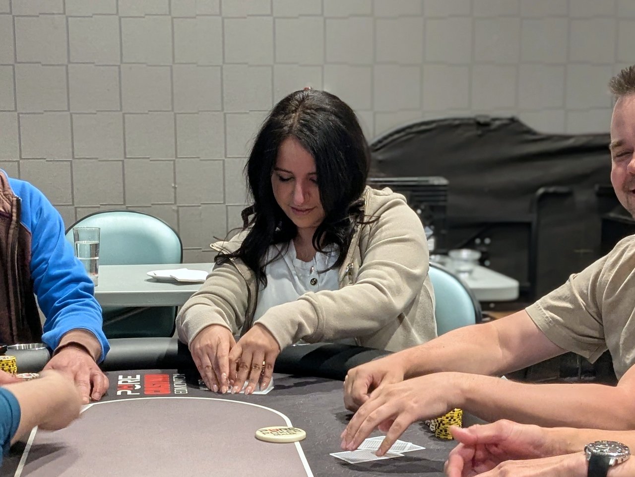 Level: 17 (4000/8000/8000 Entries: 15/80 Prizes: $20,520 They are down to 15 left in the side game now, seven players off the money spots for tonight. Event #3 is still playing down to 10 bags, with 16 left in that one, but I’ll keep an eye on this game and try to get pics when they hit the money, which looks like it might happen before Event #3 bags for the night.