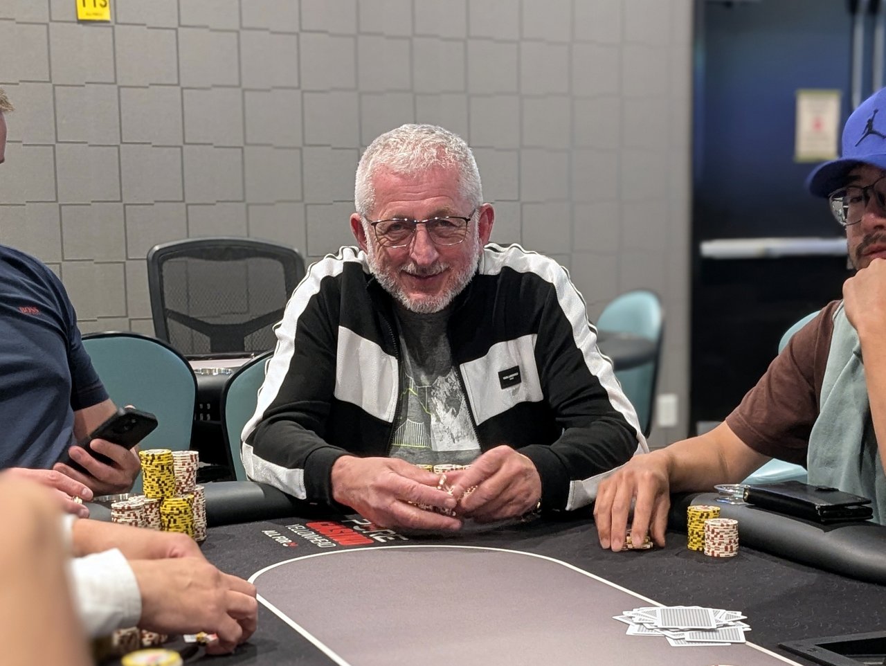 Level: 10 (1000/1500/1500) Entries: 40/70 Prizes: $18,900 The side game field is up to 70 entries with Level 10 just underway. They’ll break again after Level 11, and entries will be closed when they sit down for Level 12 in about 45 minutes. Maddie Sharma, Nu Teliani, Sheraz Nasir, and Ron Lauzon are among the players in their seats now.