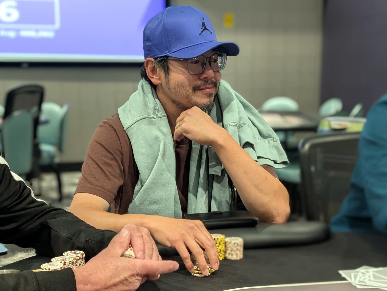 Level: 21 (10000/20000/20000) Entries: 11/80 Prizes: $20,520 The side game is down to 11 players left now, putting them 3 off the 8 paid spots. The average stack is less than 20 big blinds right now, and with the blinds increasing so quickly, the average stack is only likely to decrease. Tony Comely, Tom T, Nu Teliani, Stefan Maloney, and Colten Yamagishi are among the players remaining, and last time I wandered by, it looked like Yamagishi was on one of the bigger stacks in the game.
