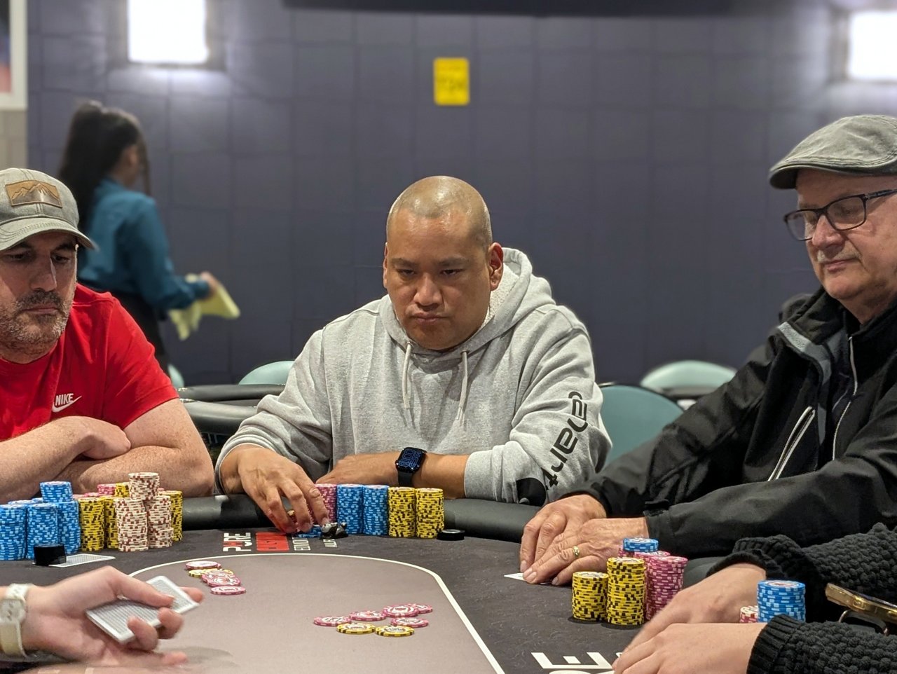 Despite the fact this was Sharma’s third final table and third runner-up finish this week, Legacy wasn’t intimidated. He played a cool, patient game, taking his shots where he found them, until heads up, when he ramped it up. The biggest spot came just a couple of hands before the end.