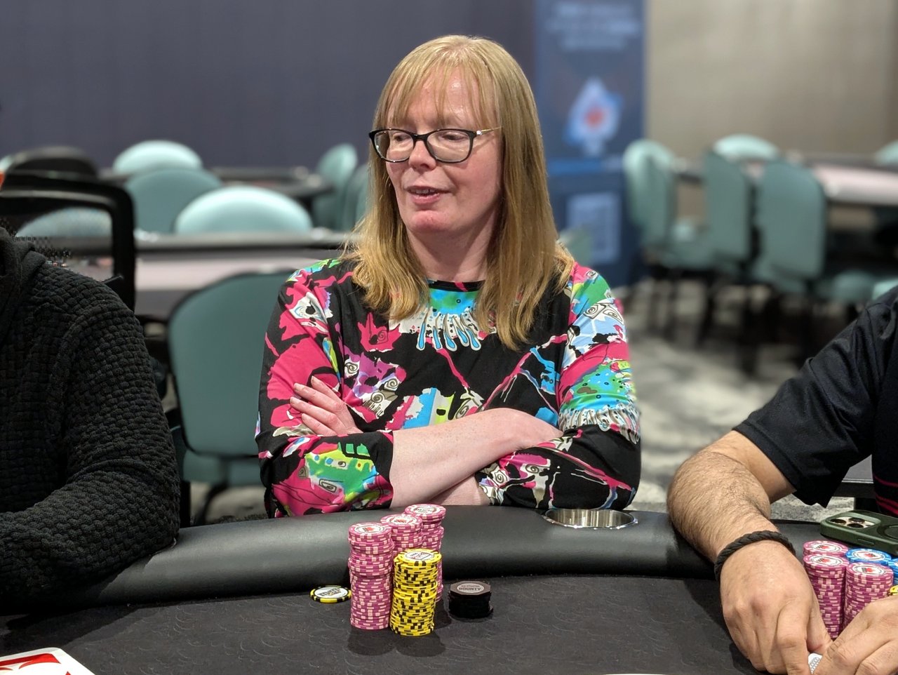 Lynn Norris was very short coming back from the break, and she couldn’t spin it up. However, she was short for most of the final table, and managed to ladder over several bigger stacks for 3rd place tonight.