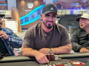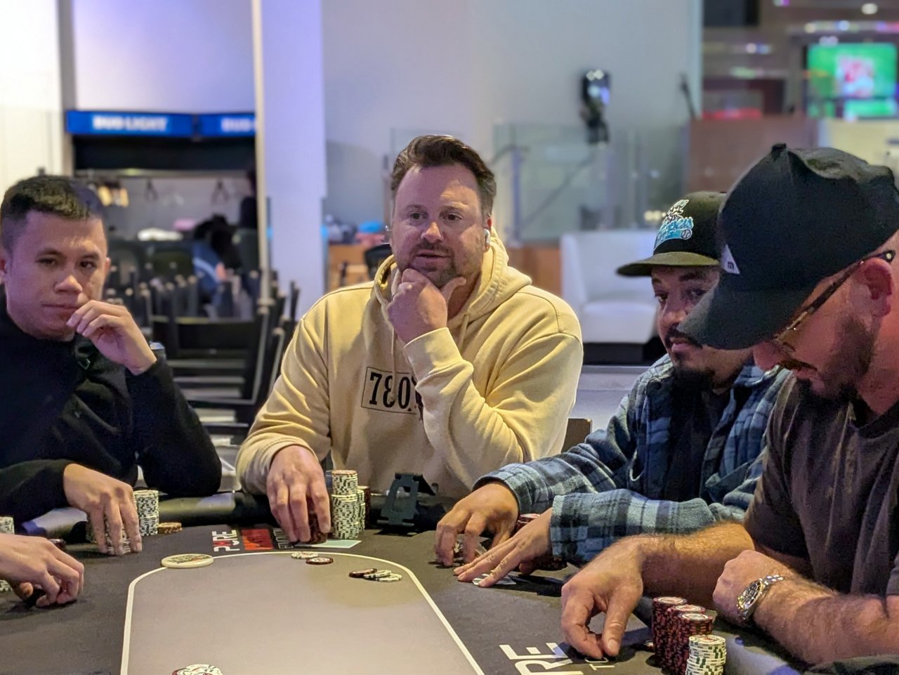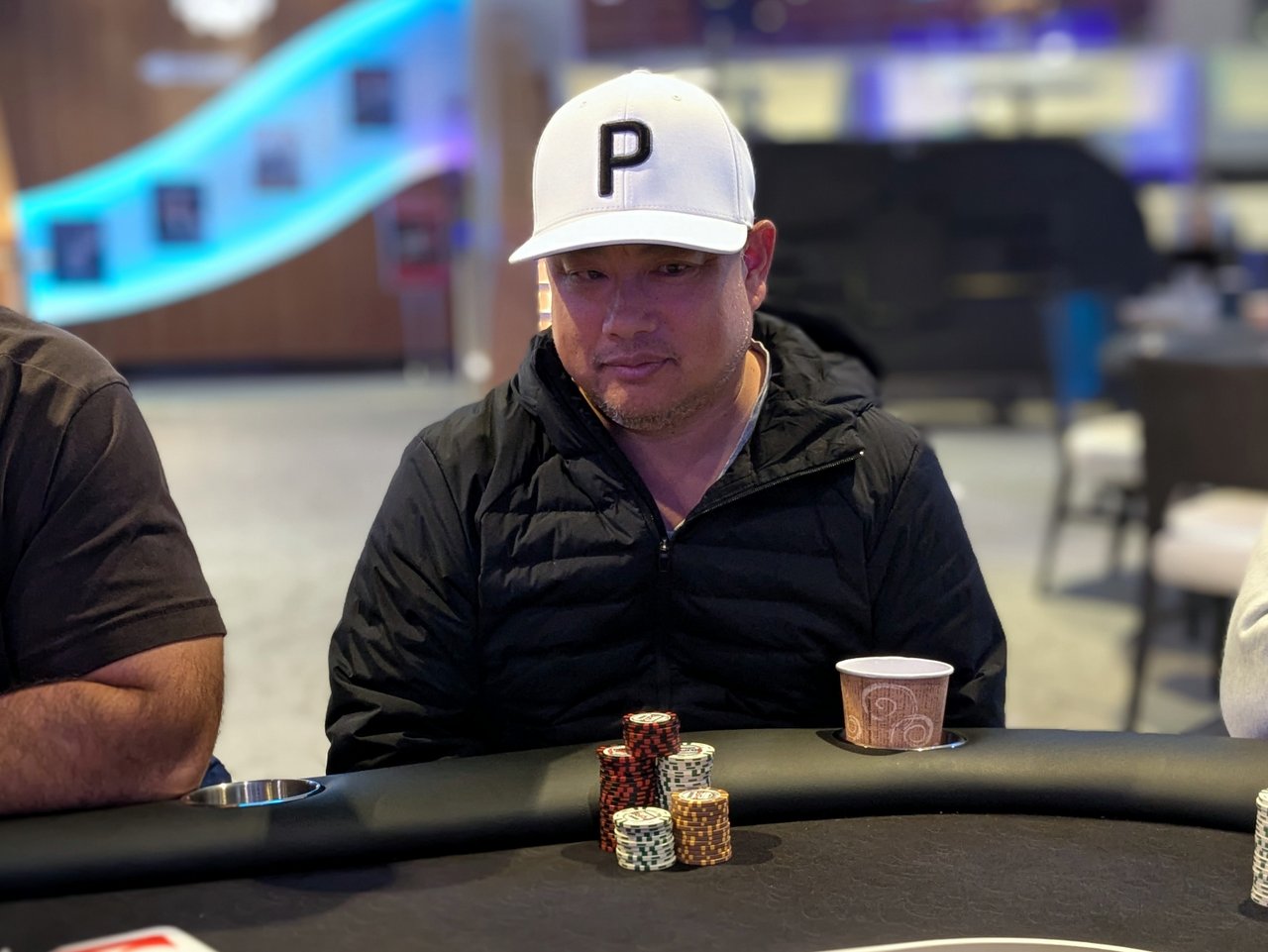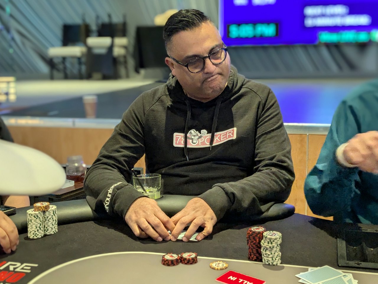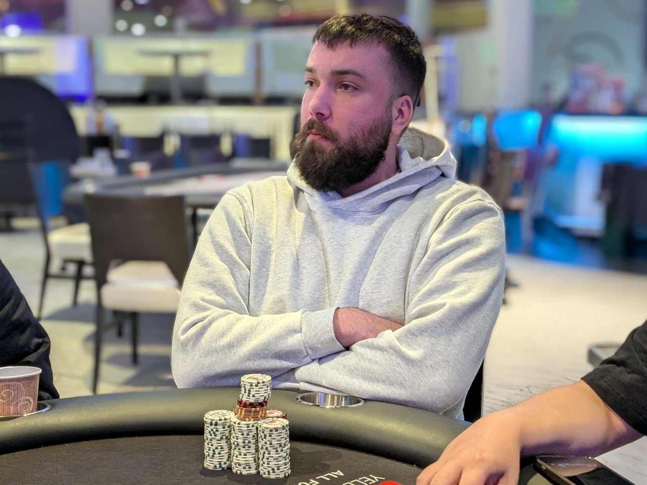 Defending Champ Matthew Ouellette just busted his first Main bullet in almost as brutal a fashion. He got his 30k in the middle during Level 1 of the opening day with a boat, but ran into quads. He quickly rebought to take another shot at repeating his title.