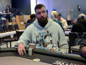 It couldn’t last, however, and he got it in from the button with both Deven Lane and Skyler York calling from the blinds. There was a healthy side pot by the time the 3♥9♠7♥8♠K♠ board, which Lane took with his king-jack of hearts, sending Yamagishi out on the bubble.