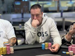 It checked to Anthony Madden on the cutoff, and he bet 35k. Tony Comely folded his button, and Leo Zhang folded his small blind before Zeyu “Skytrain” Huang check-potted to 165k. Urbanovich got out of the way, as did Madden after some time in the tank. Huang showed a pair of tens for the flopped set as he collected the pot.