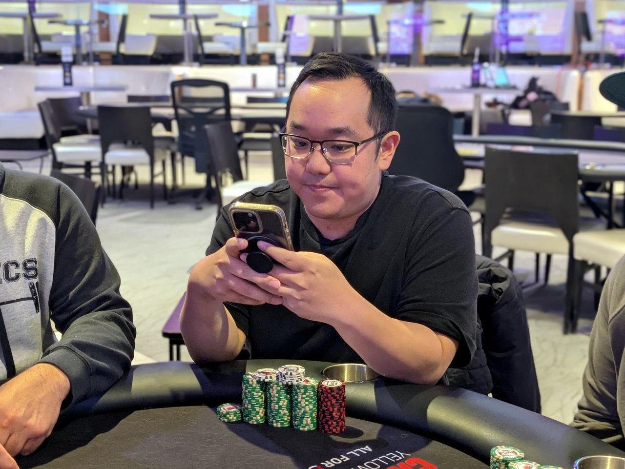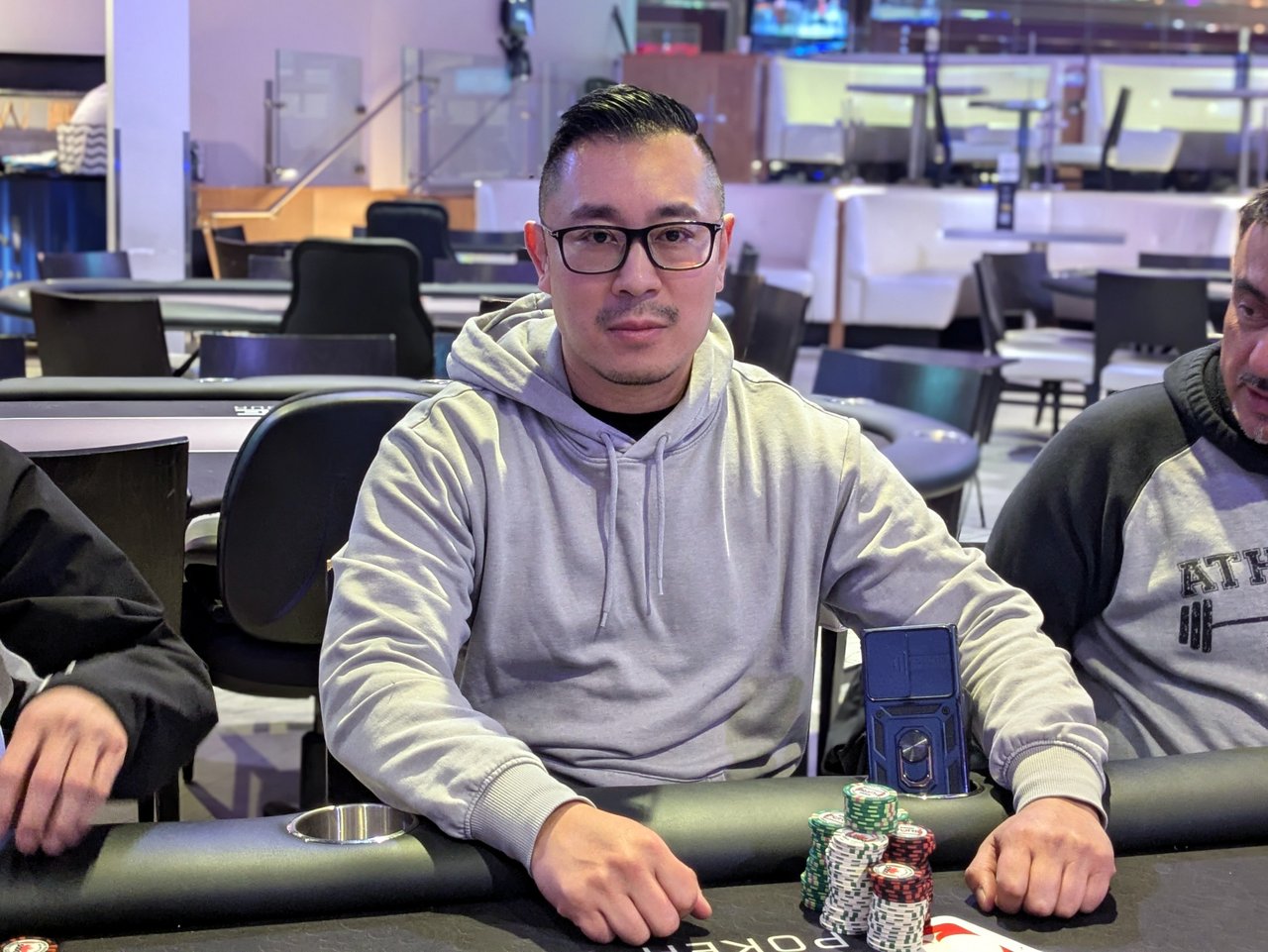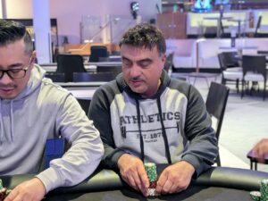 It’s a field of regulars so far today, with a long list of familiar faces, including Kim & Keith Graham, Malcolm Bolger, Mike Malm (who was runner-up in the 6-ax last night, defending champ Tony Ma, Matt Ouellette, Jason Law, Brett Worton, Daniel Lefebvre, Kirk Nilson, Michael Baumann, here fron Germany for just his second tournament on Canadian soil after soft bubbling the PLO Bounty last night, Eric Wasylenko, Preston Stevenson, Colten Yamagishi, Brady O’Hara, Resul Dauti, Nichael St. Pierre-Porter (who won the 6-Max yesterday), Ryan Comely, Larry Quon, Nadav Bitton, Shawn Taghavi, Amir Khan, David Chau, Daniel Luczyk, Jan Rufoli, and Rob Lothian, among others.