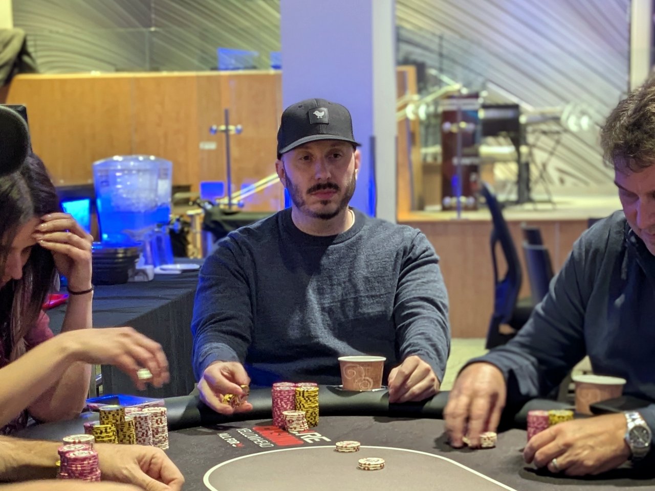 Jo Teliani The Deepstack Hyper is over with Martin Campeau taking the win. He was the short stack going into heads-up, but ace-eight was his lucky hand. In his first double, he cracked Jo Teliani’s ace-eight with trip tens to double into the lead, then found ace-eight himself against Reliani’s king-jack. He hit his ace on a paired board for aces and fives, eight high to take it down. Campeau requested no winner’s photo, but he is pictured above from the final table faces.