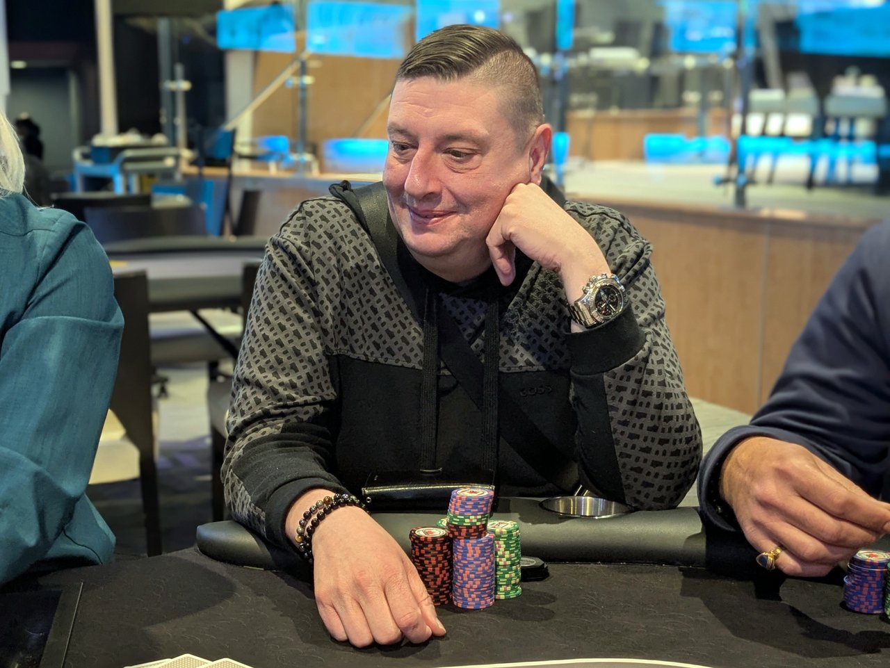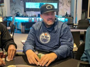 Level: 16 (3000/6000/6000) Entries: 12/108 Prizes: $30,780 ($19,980 prizes, $10,800 bounties) Germany’s Michael Baumann was the soft bubble tonight, bringing the game down to 12 remaining, and putting the game hand-for-hand. Baumann just arrived in Canada yesterday, and is here for a few months of a poker holiday. Though he fell a bit short of the money in this one, it was a pretty solid effort for his first Canadian tournament.