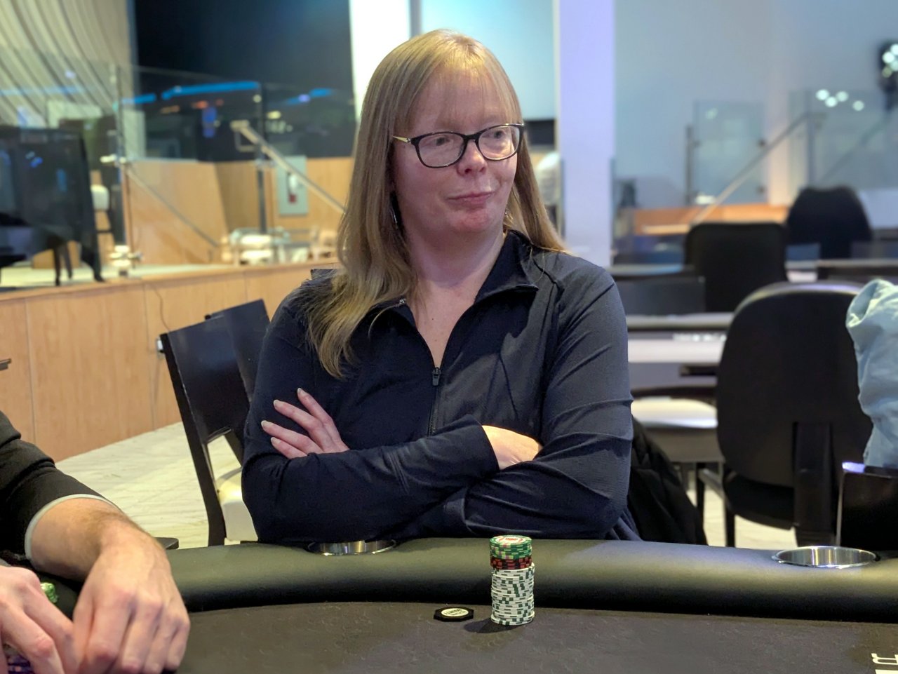 Kenneth Budd Heads up lasted just a single hand, as they ended it with a cooler. Lynn Norris woke up with ace-queen-eight-eight double-suited in diamonds & hearts against king-king-three-deuce for Kenneth Budd. Norris flopped her queen, but then ran out to a heart flush to crack the kings of Budd and force him into second place after he led most of the endgame tonight.