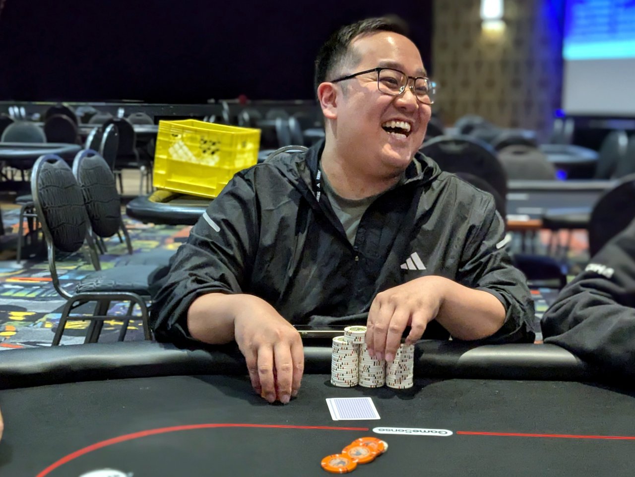 Jerry Li and Eric Wasylenko are now heads up for the title. Wasy started with a big lead, but Li just doubled up with fours over ace-seven for Wasy. Li flopped the boat, but when Wasy turned a seven, he had bigger boat outs. The river wasn’t one of them, however, and Li doubled to a small lead.