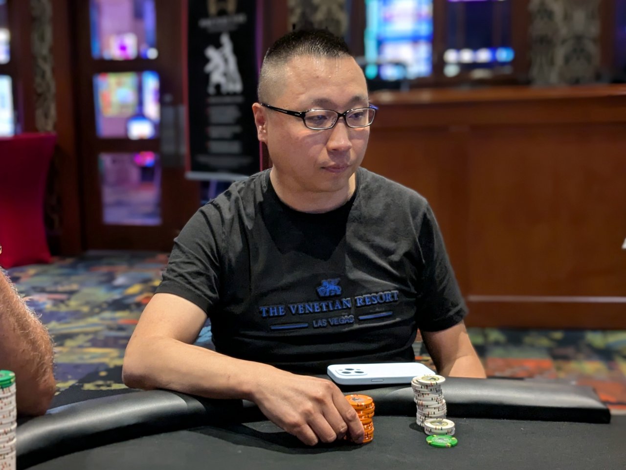 Li then found another run-good gear, flopping it twice in two successive hands for big pots. In the first, he flopped a wheel, and while he didn’t get paid on the river, he still picked up chips. Immediately after that, he tripped on the flop with nines and got paid on the river for a huge chip up to the lead.