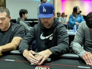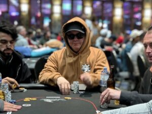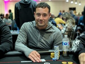 He also took the chips of Jason Chan (4th, $5,732) and Dallas Larson (3rd, $8,156), putting him in a big lead for heads-up play against Munro. The heads-up didn’t last long before the cooler came.