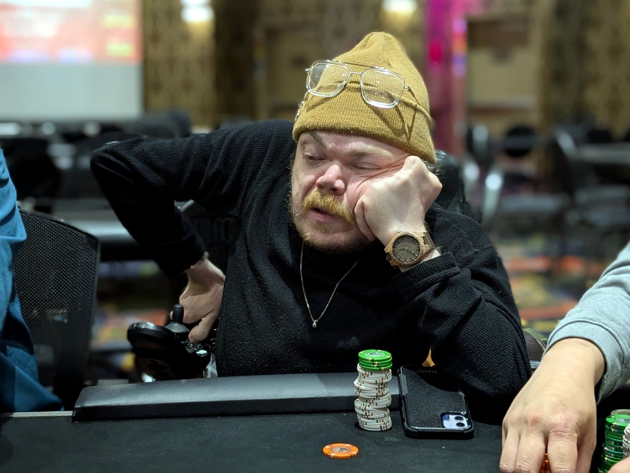 They played three handed for a bit until Dmytro Nikiforov ran into a brutal cooler. Arsenault shoved over his opening raise, and he tank-called it off with jacks. Arsenault had the goods, though, turning over cowboys and holding to take a big lead into heads up.