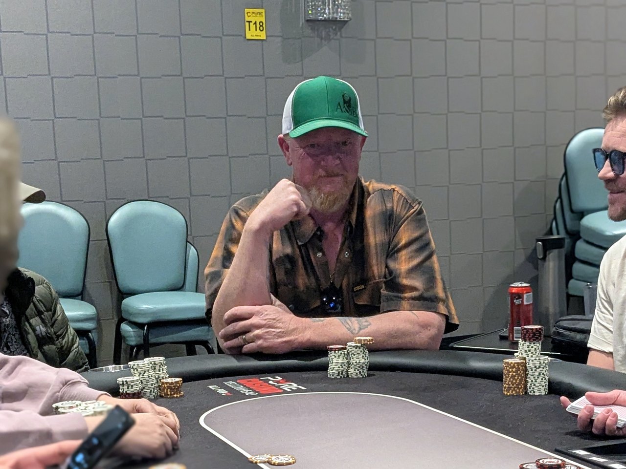 Level: 13 (1500/3000/3000) Entries: 31/130 Prizes: $122,265 Local Time: 10:40 PM They are 15 eliminations away from the bags now. I’ve just confirmed the final numbers, and according to the TD, Joanne Jost, they are playing down to 16 players tonight, not 17 as I previously reported.