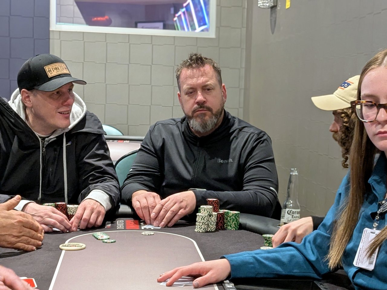 Deven Lane It’s down to three in Event #7 now after Deven Lane lost his stack for 4th place. I was out of the room, so I missed the action.