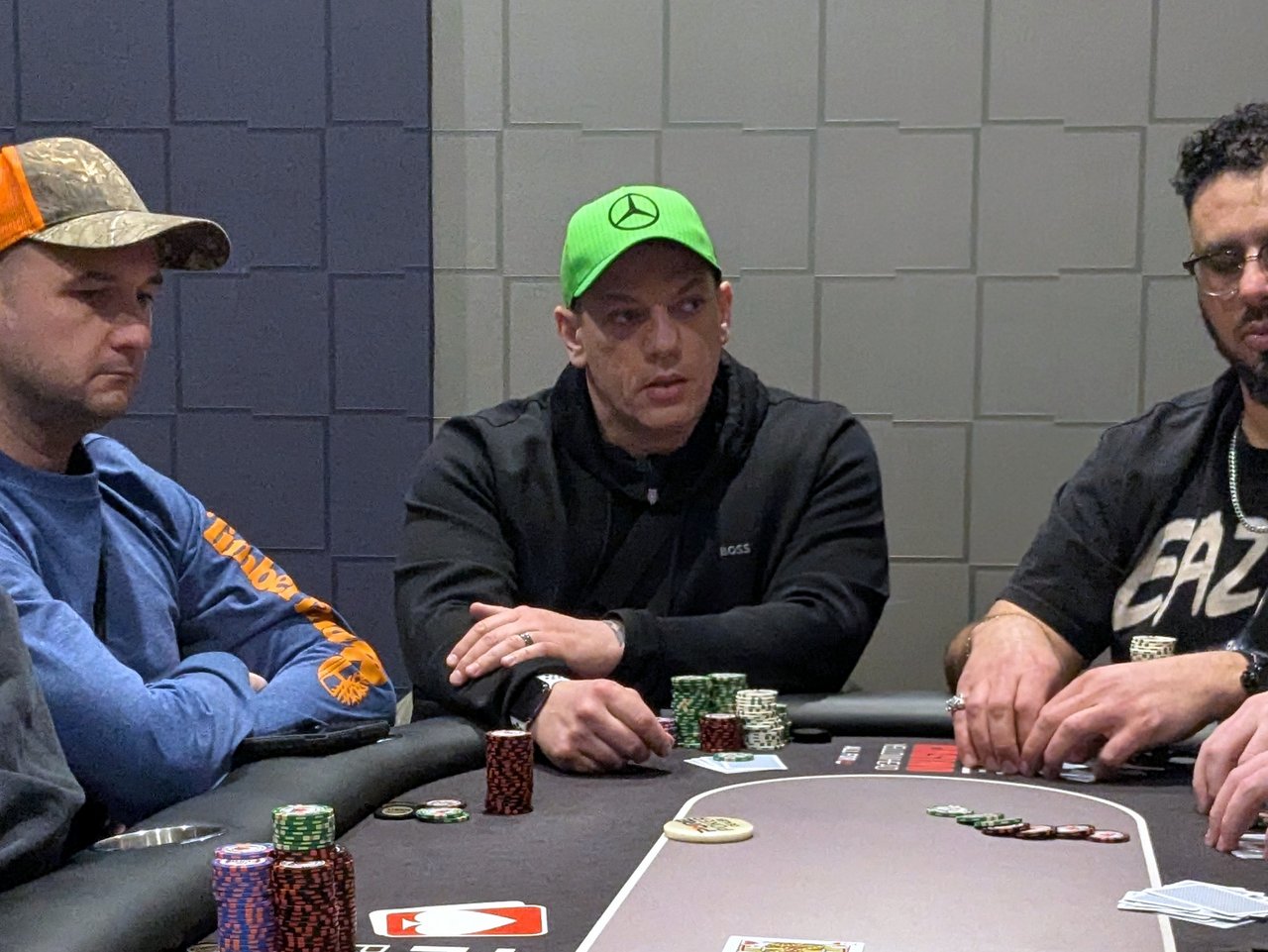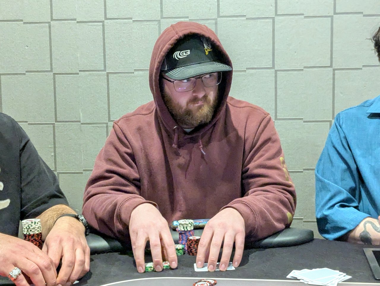 Mike Samchuk I missed the action while I was writing up the previous hand, but Mike Samchuk hit the rail for 6th place tonight, collecting $1,290 for his troubles.
