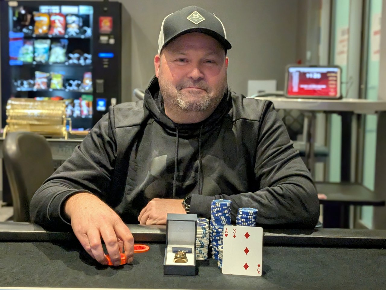 Once Benny Bruneau busted in 6th, the pace picked up a bit and things were done within two levels from then. When Bradley Bishop and Zoran Kaniski got heads up, Kaniski was very short, with Bishop holding most of the chips in play. It didn’t last long before Kaniski shoved a suited king, but ran into ace-three for Bishop. Both players missed the board, so the ace-high played for the win.