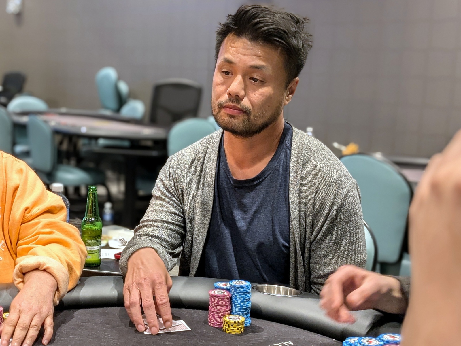 Level: 7 (400/800/800) Entries: 33/64 Prizes: $18,240 There are 64 entries on the board for the NLH/PLO mix game now with about 25 minutes to play in Level 7. There are 33 active players still and among them are DJ Sharma, Stefan Maloney, Kris Steinbach, Ed Zurawell, Ryan Comely, Lina Niu Dylan Descheneaux, Benny Sarnelli, Darrell Moore, Brady O’hara, and Colten Yamagishi.