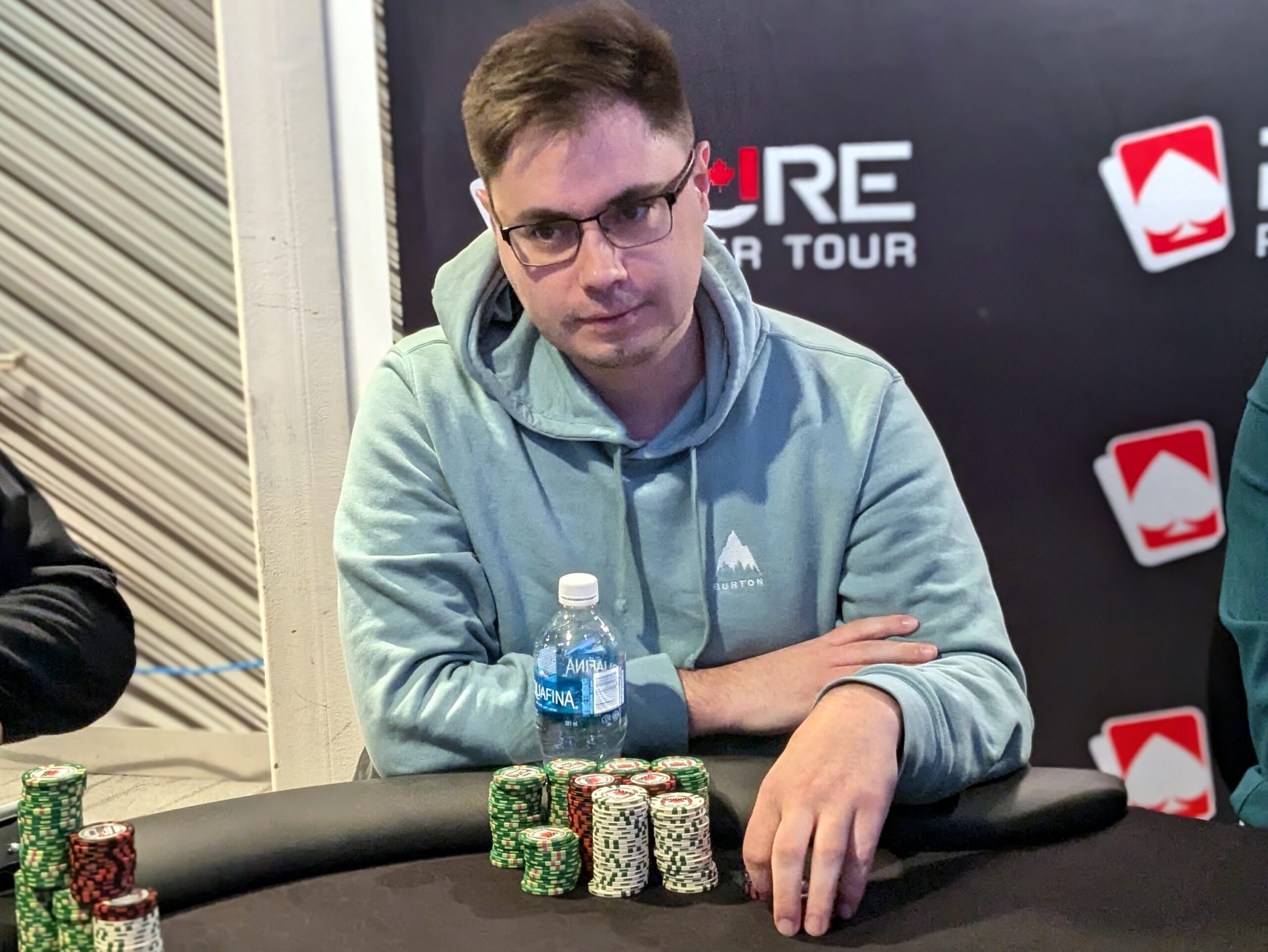Shane Kozniuk Eric Wasylenko raised his button to 100k then snapped it off when Shan Kozniuk shoved the small blind. Wasy’s queens were well ahead of the A♦4♦ for Kozniuk. The board ran clean for the queens, and Kozniuk was out in 3rd place.
