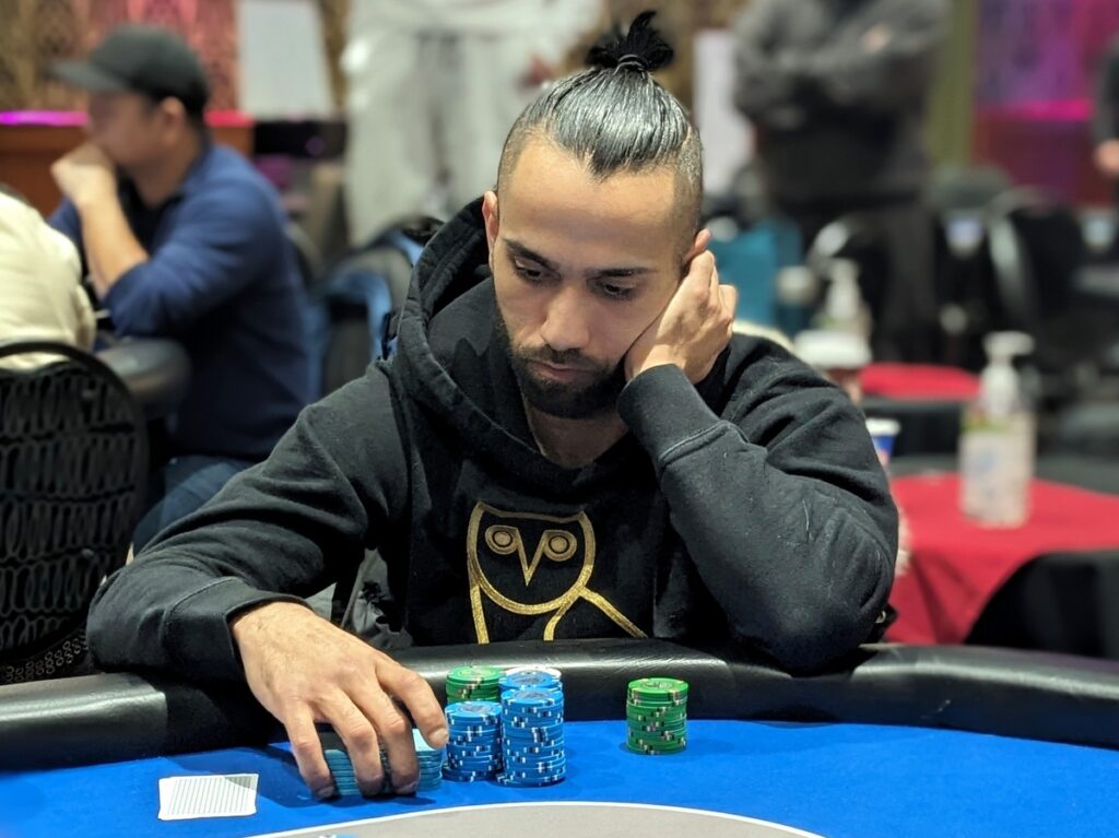 Hasanain Al Ghunaim doesn’t come out that often for these events, but when he does, he always seems to bag a big stack. Today was no exception, with his 1c stack the clear leader for all three flights. He bagged 733k, almost 200k more than 1b leader Regan Duong. Kristopher Di Leone (1a leader), Brian Fleiming (1c), and Essam Saadeddine (1b) round out the top five stacks for Day 2.
