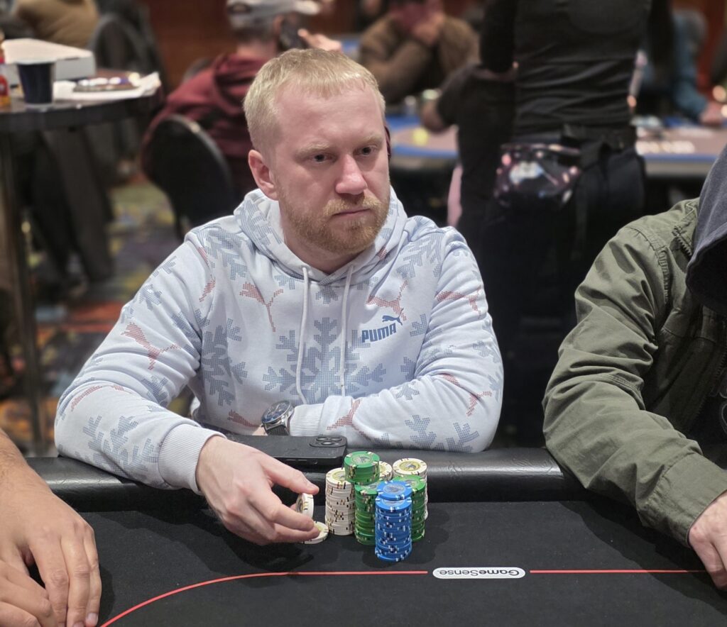The board ran out 4♦5♦2♠A♣Q♠ for Ponomarev to hit the rail.
