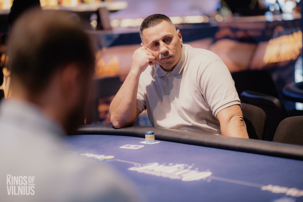 Big-stacked Vasilij Barna opened to 5,000 UTG. Juris Liepins made the call from the Button, before Herli Olop moved all in for 59,000 from the Small Blind. After receiving the count, Barna made the call before Liepins got out of the way.