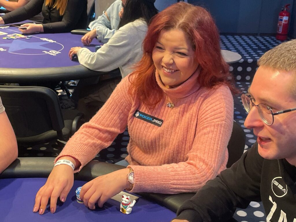 Saara Benlamine was all-in for 26,000 and at risk against defending champion Aurimas Stanevicius.