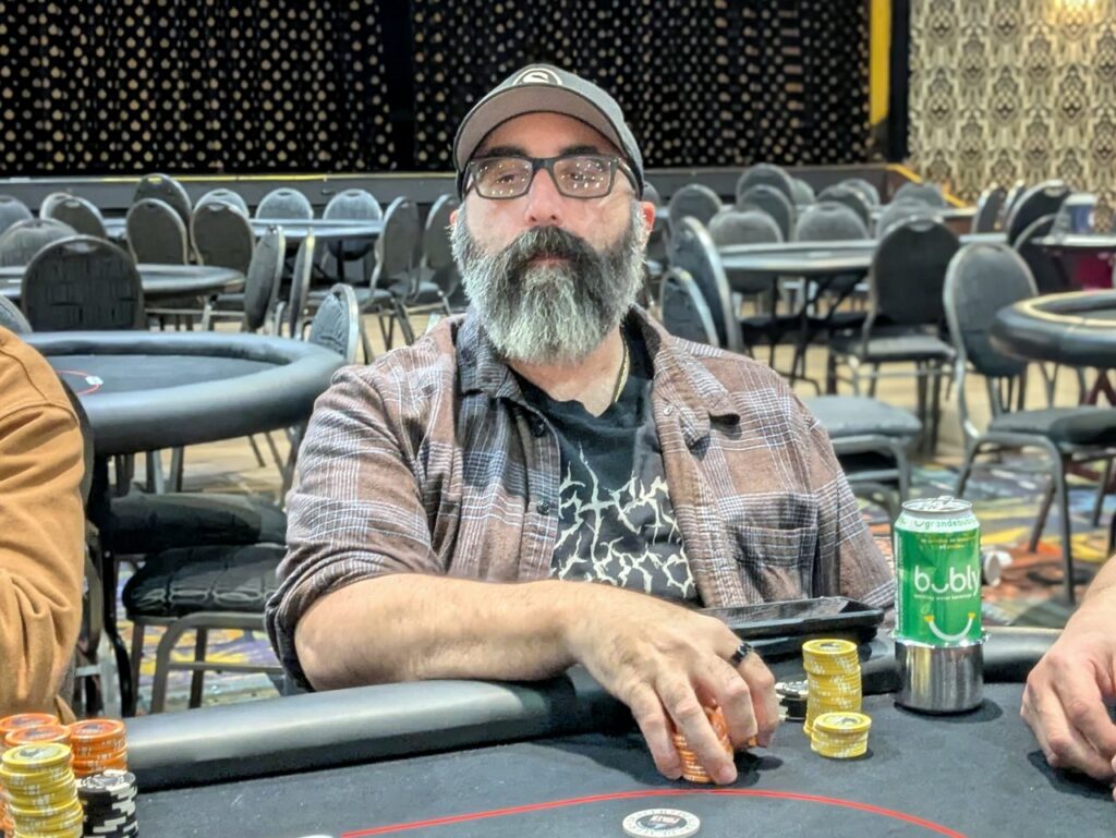 Benny Sarnelli has been surviving, but his run just came to an end. He shoved the rest of his stack in when he flopped a pair of deuces, but Haven Taylor was on a set of aces and a diamond draw. She improved to the flush on the river and sent Sarnelli to the cage for 6th place.