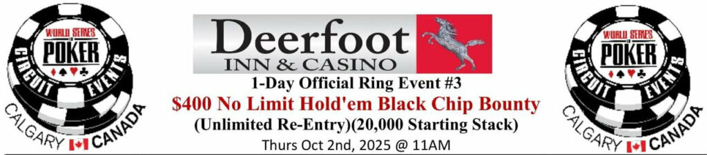 The opening event for Day 2 of WSOP-C Calgary October 2025 is the Black Chip Bounty. For $400, $230 goes into the prizes, with a flat $100 bounty on everyone’s head.