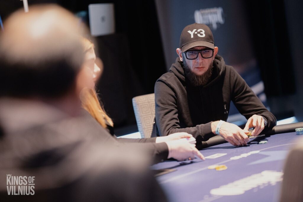 On the 8♠7♠7♥ flop, Bulksas check-jammed for around 375,000 in the face of a bet of 125,000 from Kim, who quickly folded.
