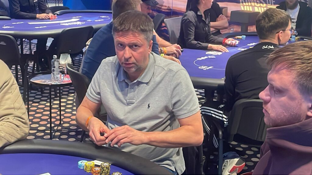 Paulius Kostickis opened to 1,600 from early position, before being met with a three-bet to 3,600 from Viktors Caikins in the cutoff.