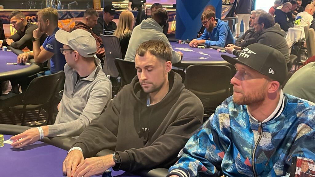 Defending champion Aurimas Stanevicius was all-in for 8,100 on a flop of 5♦4♦3♠, and at risk against Laurynas Cerniauskas.