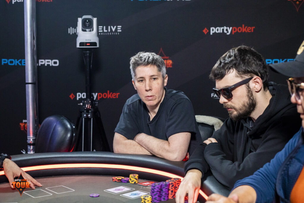 Johnson Kitete-Kikumba opened to 100,000 from under the gun, and was faced with a three-bet jam from Sarah Cope to 535,000 from the button.