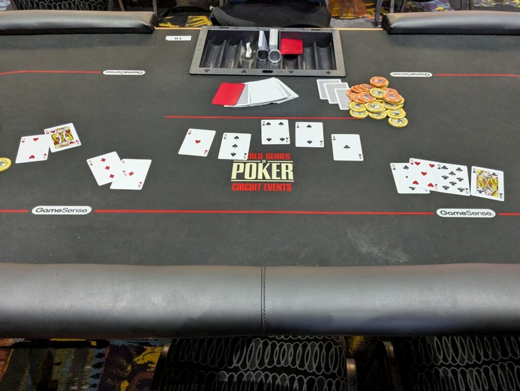 Chen gave it a good go, however, playing aggressively with the short stack. On more than one hand, he check-potted the flop almost faster than Darlington could get his bet out, forcing folds to get small chip ups.