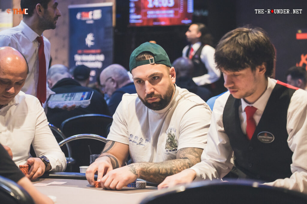 One can tell we’re approaching the final table; the celerity of play has gone up, and it’s a more serious and dense environment in the room.