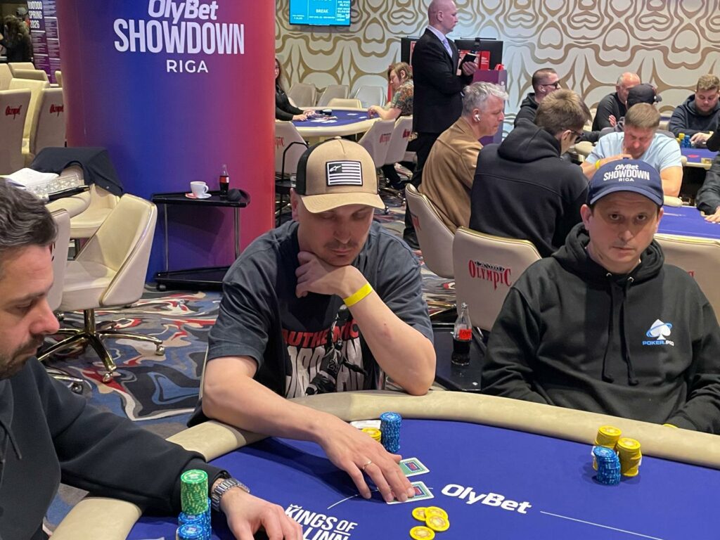 Kaspars Butans was all-in for 99,000 and at risk against Georgios Orestidis.