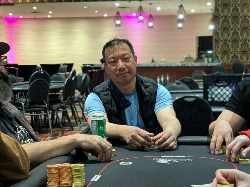 Duane Wong potted under the gun to 140k, leaving himself fumes behind. Jeff Bryde called from the button.