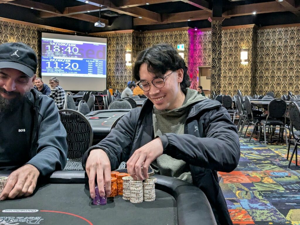 Duong’s stack puts him in the provisional lead for Day 2, pending the results of Saturday’s Day 1c. He has about 10k more than Day 1a leader Kristopher De Leone, and Saadeddine capped the Day 1a #2 by about 2k.