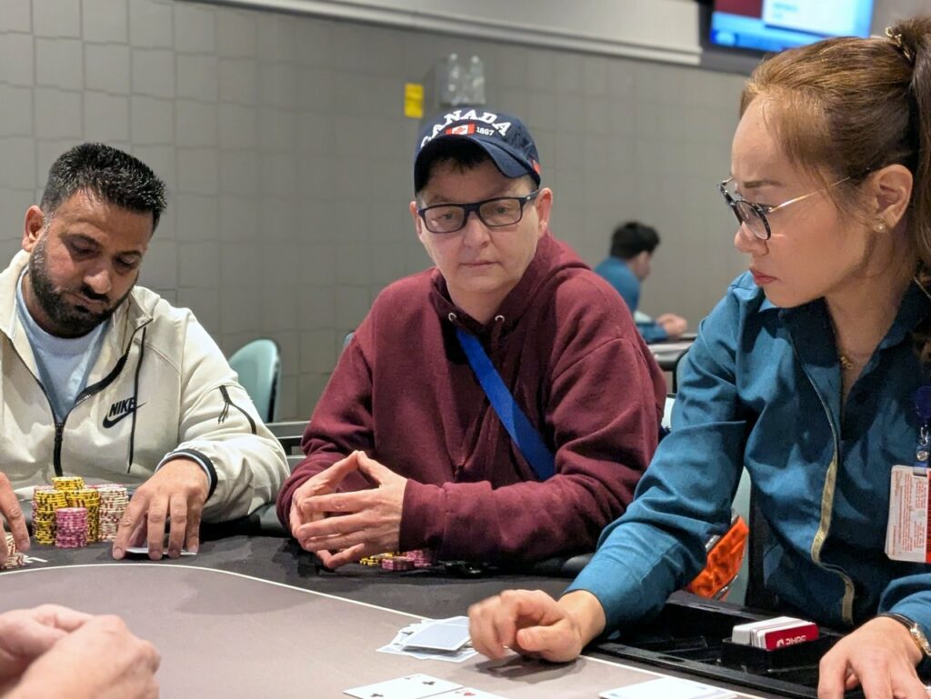 While I was processing the FT pictures, Rhonda Fiveland was the first player to bust from the FT. I missed the action, but I overheard her say she was all in with double-suited aces, so it’s hard to get it in any better preflop in PLO.