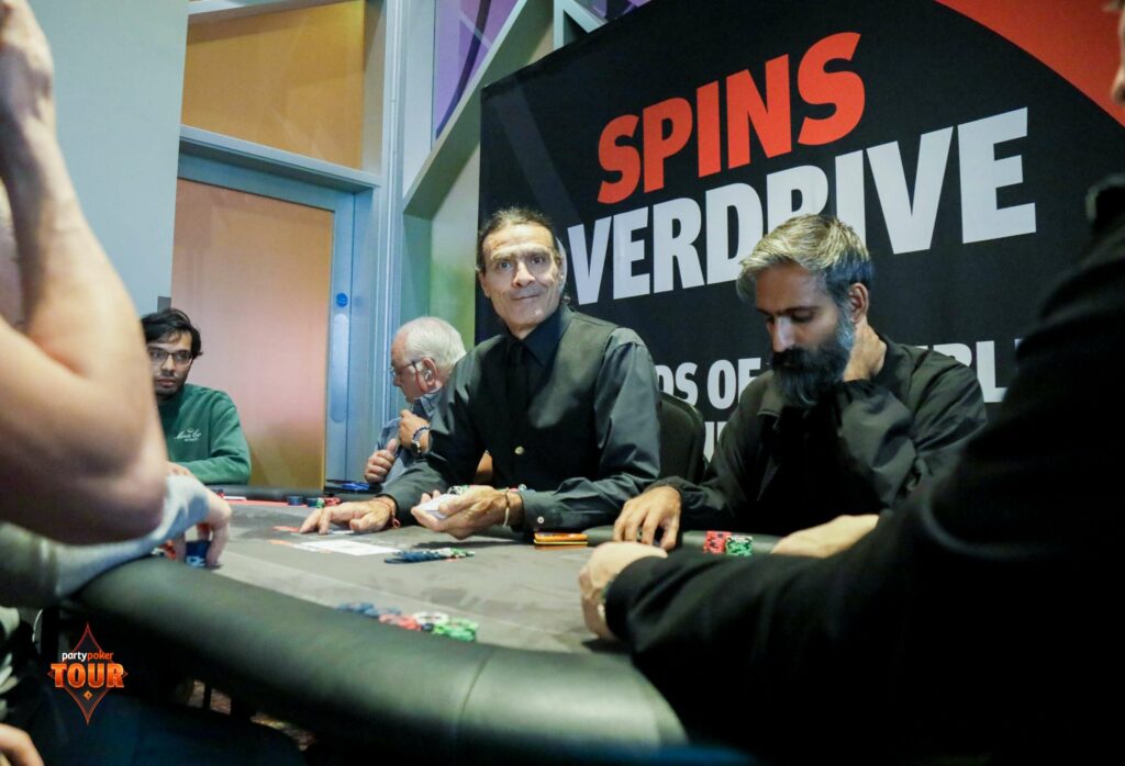 Johnson check-called a 1,500 continuation bet from Ablott on the 2♥3♣8♥ flop. The dealer revealed the 7♦ on the turn; after another check by Johnson, Ablott now sized up to 5,000. Johnson wasn’t going anywhere just yet, and he threw in an orange 5,000 chip for the call.