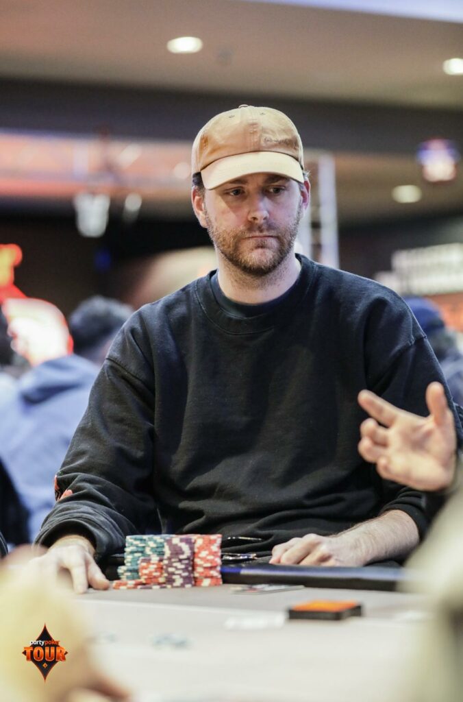 Hewes was drawing to a gutshot, and much to Sirbu’s disbelief and disgust, the 10♦ hit on the turn to leave him drawing to a chop. The 2♥ river completed the board, confirming Hewes’ double-up.