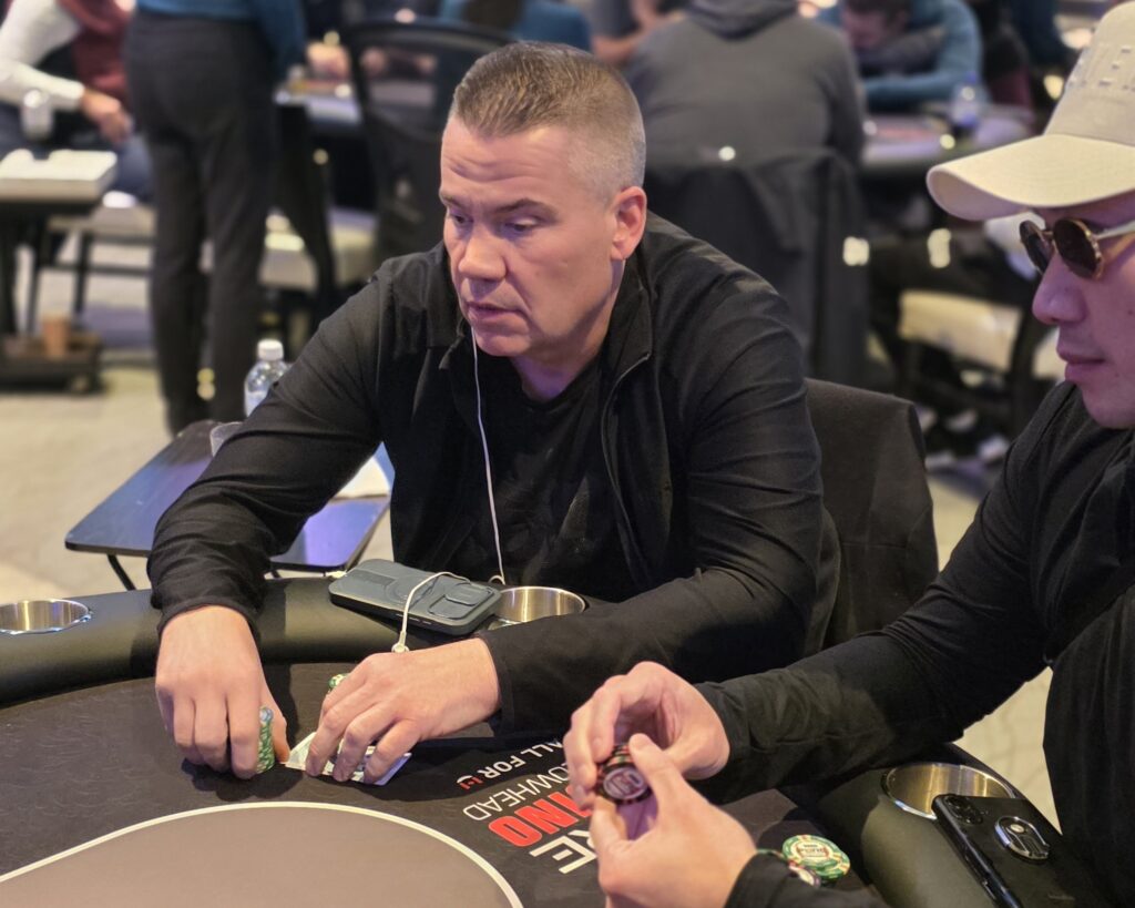 The board ran out 5♣3♠7♦10♦8♠ to bring play to three-handed.