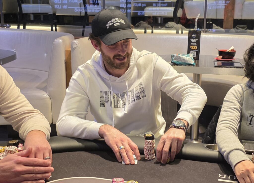 The board ran out the A♦Q♠9♥J♠K♠ for Malm to take the pot.