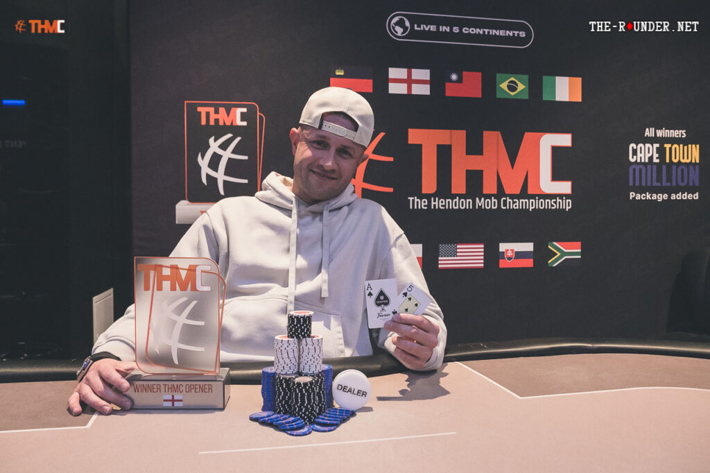With his elimination of Rudy Hanna, Joseph Saunders is now crowned the winner of the £200 Opener. Saunders locked up £7,495 after the heads-up deal; it’s his biggest ever live cash, but he was more excited about winning a Hendon Mob hoodie and the iconic trophy.
