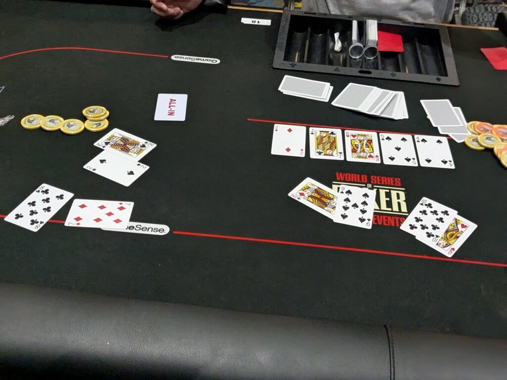 Peter Darlington is the chip leader heads up after he sent Kalil Geha to the rail in third. Geha was in good shape with top pair and the best kicker after the flop, but a deuce on the river gave Darlington two pair and the win.
