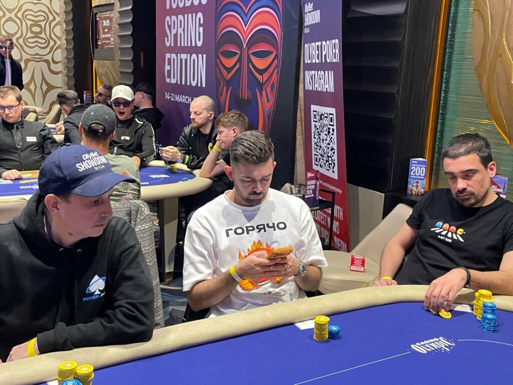 Karapanau took some time to think, before moving all in for 77,000. Narmontas made a quick call.