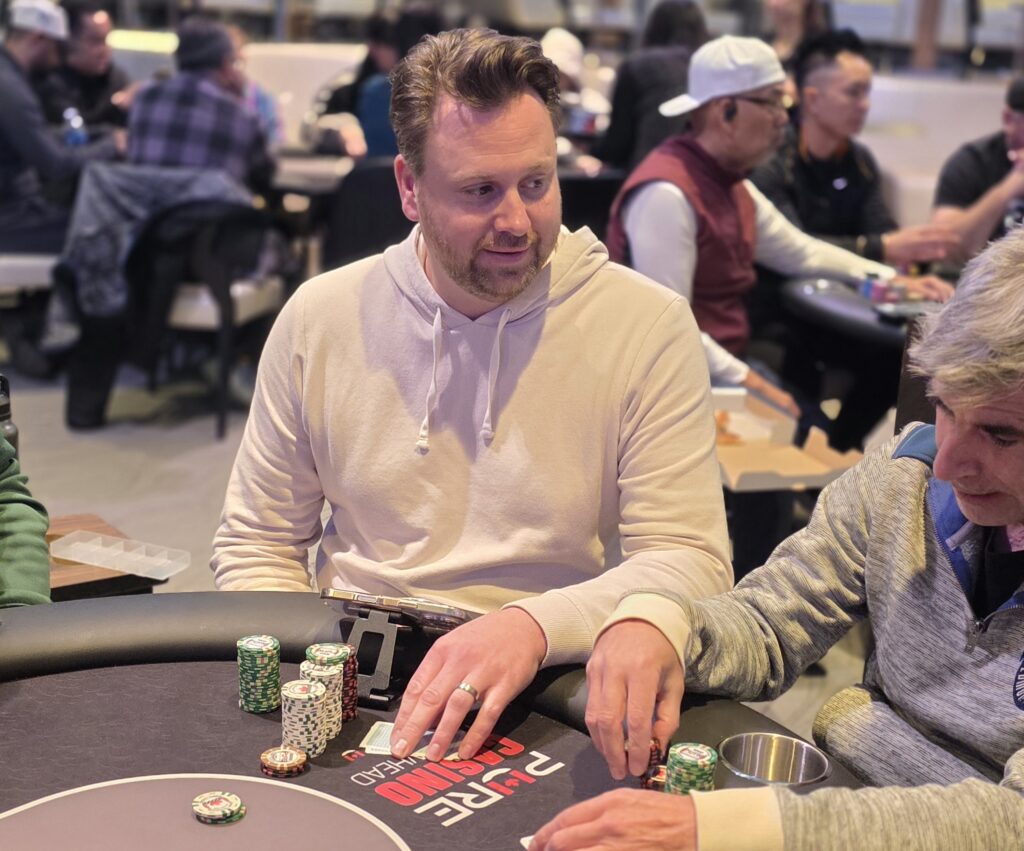 The board ran out A♥7♥7♠10♠9♣ to send Steinbach to the rail.